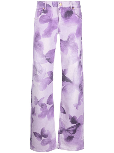 Blumarine Floral Print Boyfriend Jeans In Purple Modesens
